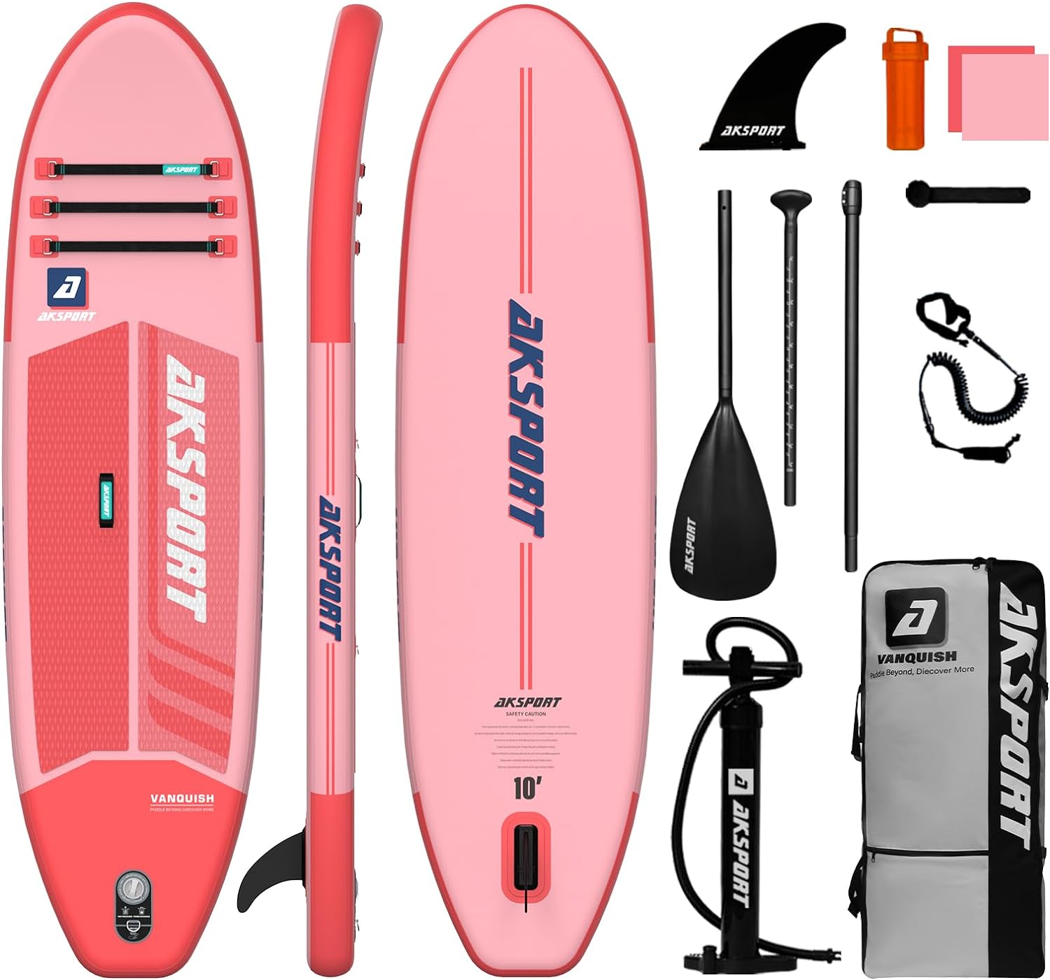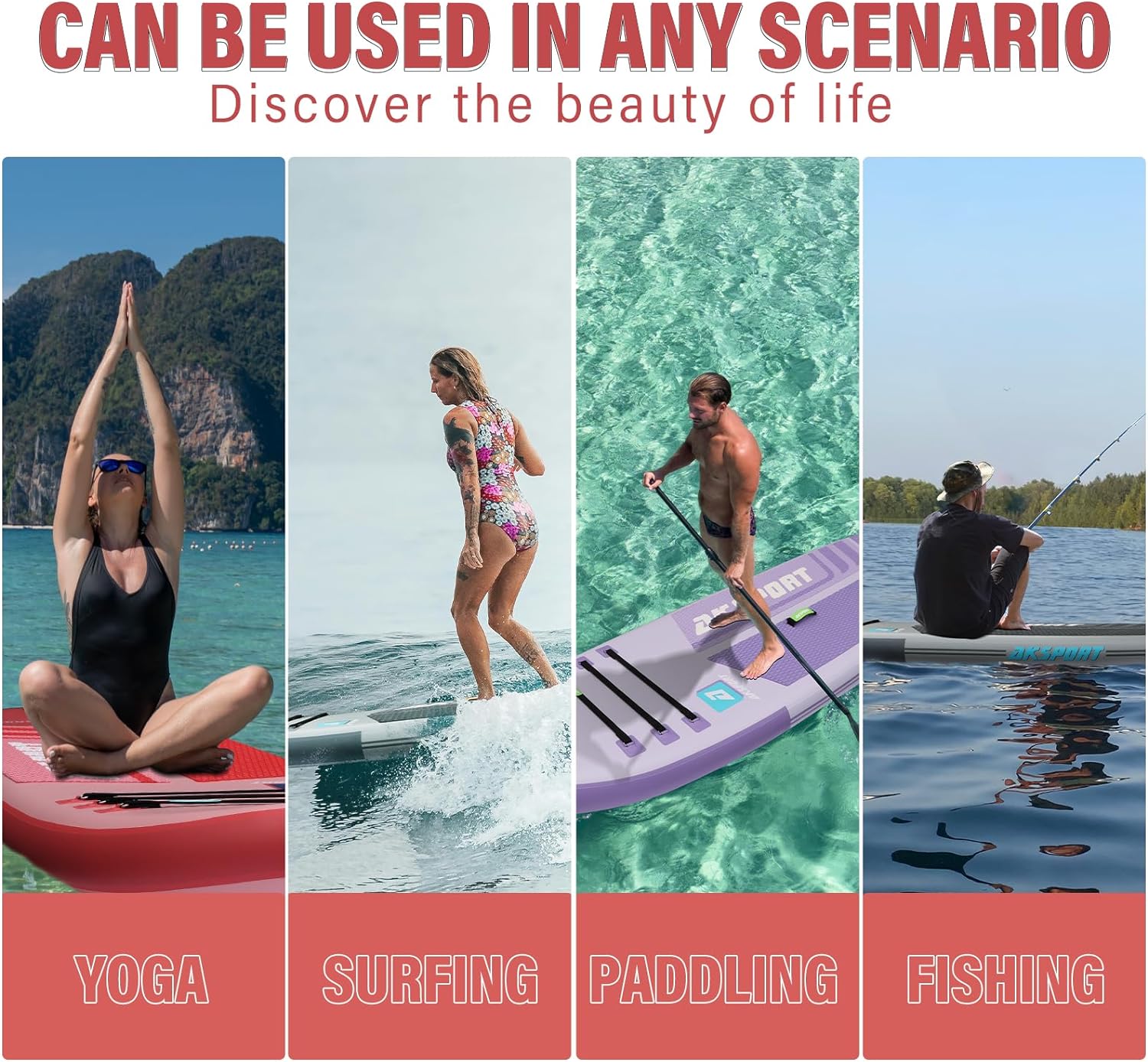 • 【HIGH QUALITY MATERIAL & SAFETY 】AKSPORT stand up paddleboard is constructed of premium quality double-sided sandwich fabric and high-density drop stitches for superior stiffness and maximum pressure . This inflatable paddle board has Anti-slip soft pad, which will prevent you from sliding,providing more stable driving and better performance.