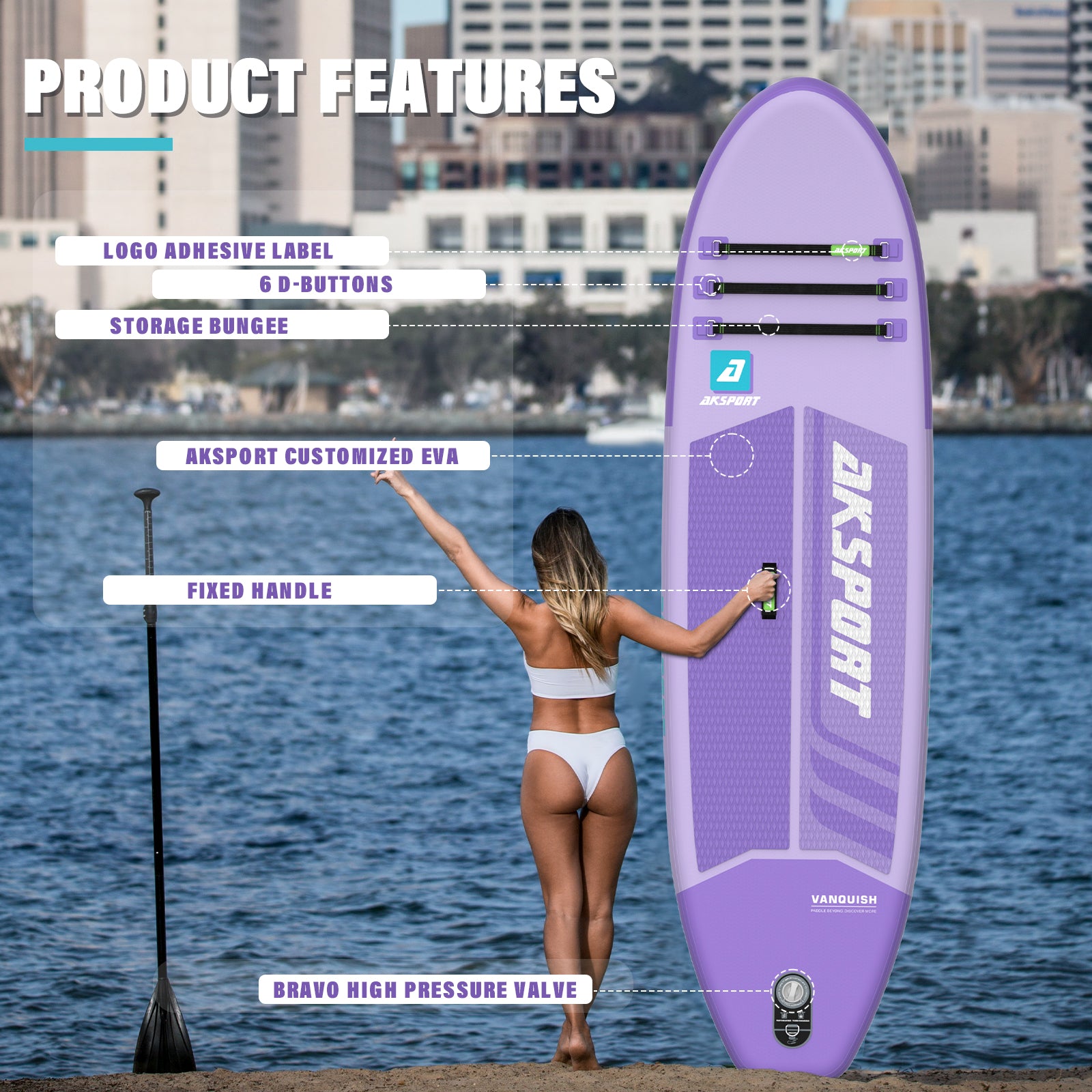 • 【HIGH QUALITY MATERIAL & SAFETY 】AKSPORT stand up paddleboard is constructed of premium quality double-sided sandwich fabric and high-density drop stitches for superior stiffness and maximum pressure . This inflatable paddle board has Anti-slip soft pad, which will prevent you from sliding,providing more stable driving and better performance.