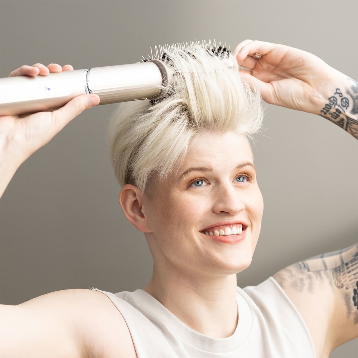 Attachable OVAL BRUSH smooths, defrizzes, and adds volume & bounce, while delivering powerful airflow.?