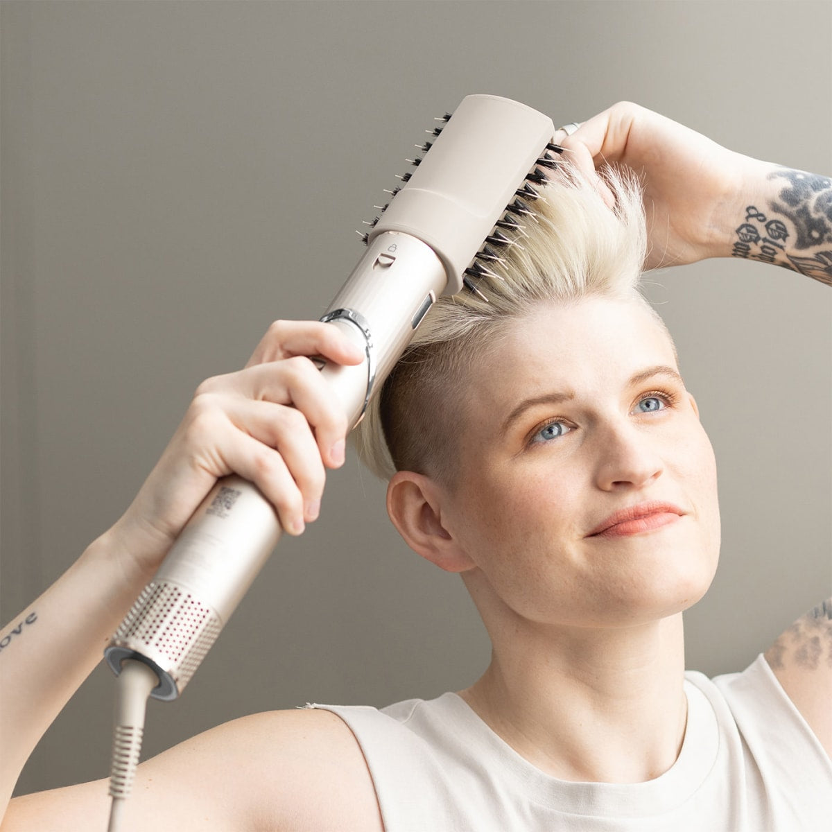 Employs powerful airflow, straightening & smoothing your hair, all at once. A combination of boar and nylon bristles detangles, smooths and adds shine*